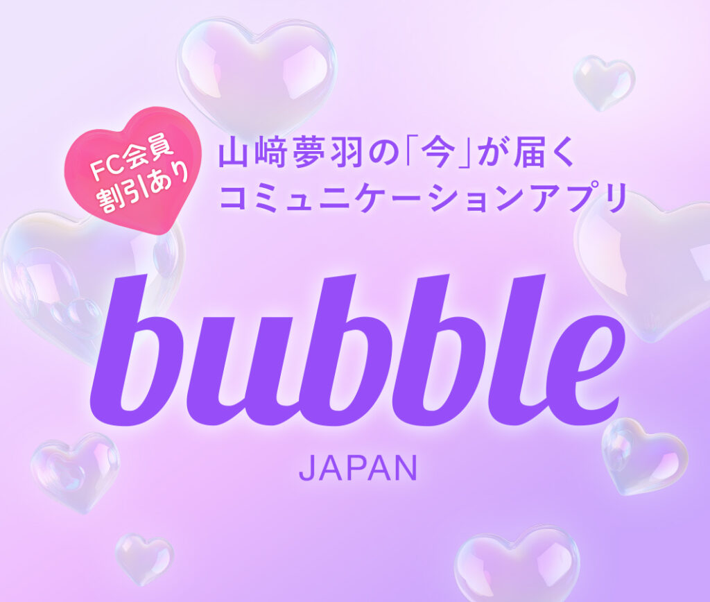 株式会社NTTドコモ・スタジオ&ライブは、グローバルコミュニケーションアプリ「bubble」の日本版「bubble for JAPAN」で山﨑夢羽のサービスが12月4日(木)より開始することをお知らせします。